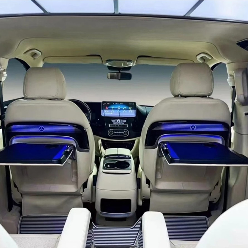 Oiriúnach le haghaidh turais ghnó, seirbhísí tointeála, nó iompar VIP, athraíonn an modhnú backrest seo do chuid istigh Vito / V-Rang go oifig soghluaiste a chumasc feidhmiúlacht, stíl, agus áisiúlacht gan uaim.